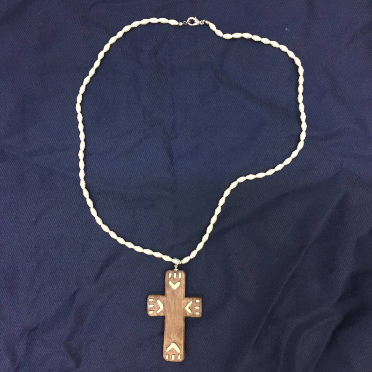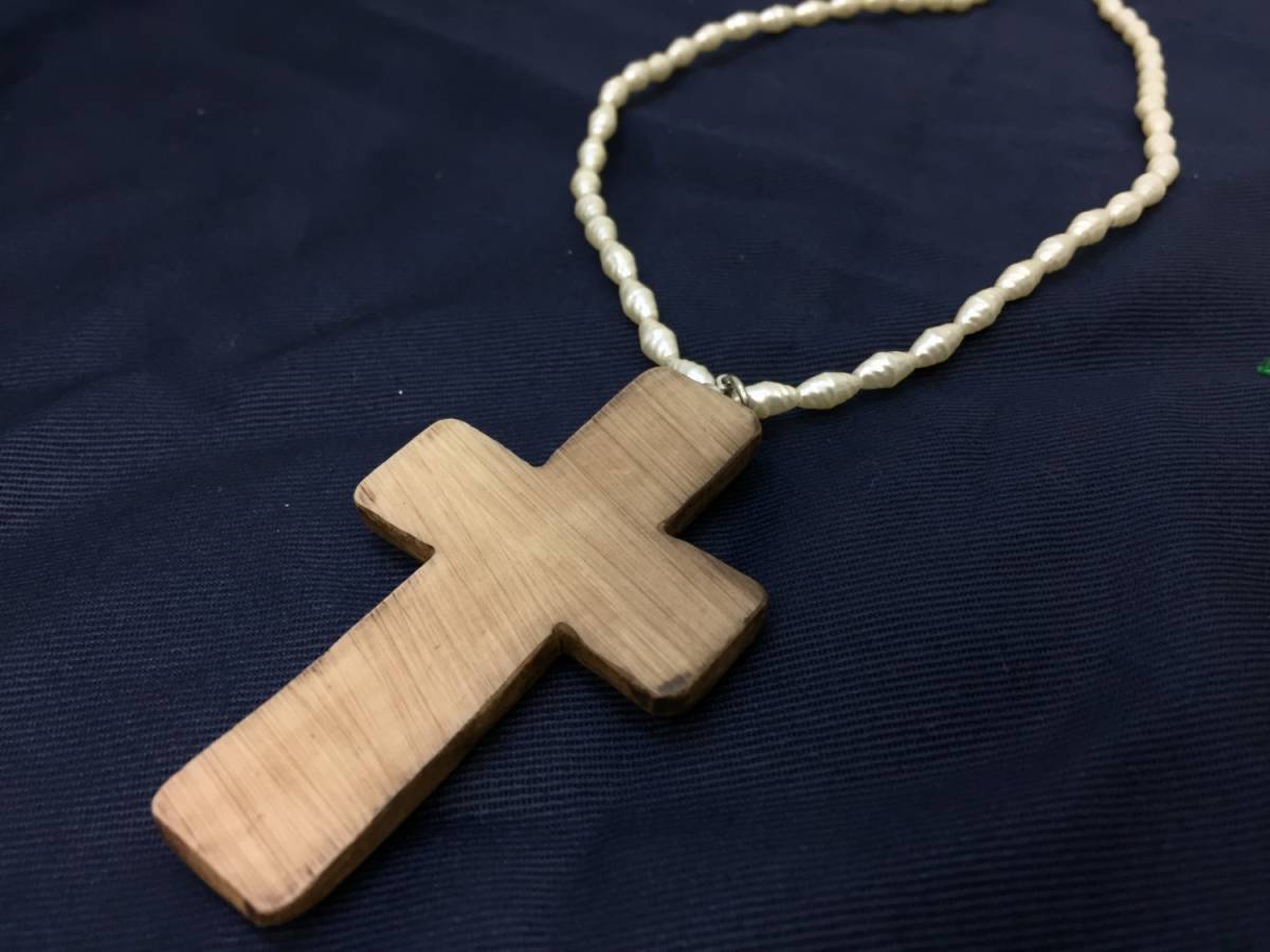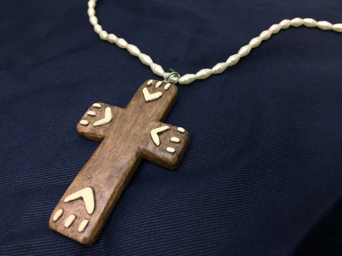 【ネックレス】約60cm ペンダント クロス 十字架 ナチュラル 素朴で可愛い雰囲気 パール ウッド 447