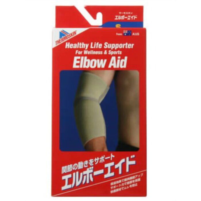 「サーモスキン エルボーエイドサポーター S」は、優れた保温力を通じて温め、血行をスムーズに整えるサポーターひじ用です。