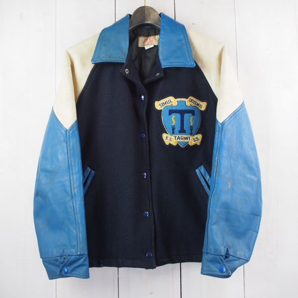カナダ製 PRIME SPORTS ウールスタジャン(16)ネイビー×オフホワイト