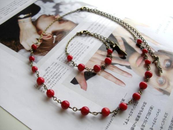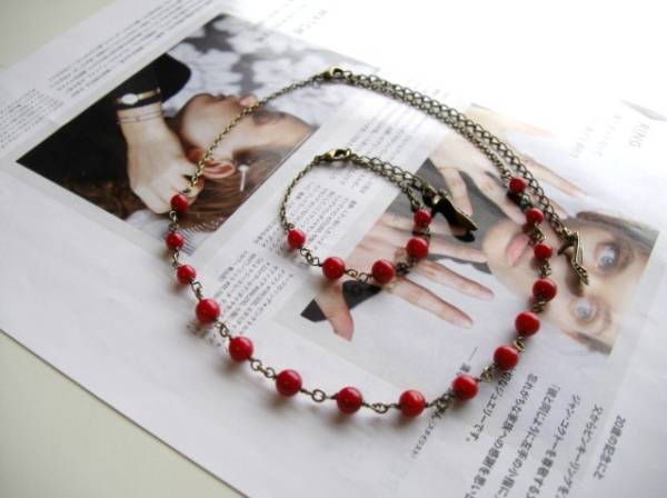 特別な一日・・シリーズです♪モードな赤・・シックな赤の珊瑚のネックレスとブレスレット2点セットです♪どちらも合わせやすいシンプルなデザインです♪6ミリ、8ミリの丸玉の珊瑚はランダムに紡ぎました♪ネックレスの長さは全長55センチ位で調節自由です♪チョーカー風にされてもブレスにされても可愛いで す♪ブレスレットは全長23センチ位で調節自由です♪単品やお揃いのネックレスも出品しています♪ハンドメイドをご理解いただいてノークレーム、ノーリターンでお願いします♪