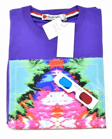 です。 ・素材:コットン100%。 ・カラー:パープル。 ・サイズ:M。 実寸 ・肩幅 約52.5cm・身幅 約56cm・着丈(リブ下から) 約73cm・袖丈 約23.5cm。(多少の誤差はお許しください) 付属している3Dメガネをかけて見ると、幾何学模様の中から何かが浮かび上がってくる、遊び心あふれる、ギミックTシャツ。 サイケな柄のTシャツは、今までにありそうでなかったアイテムです。 セブシグらしさが出たTシャツ、いかがでしょうか? 新品 日本製 定価¥9000+TAX ※3Dメガネが付属します かなりお値打ちだと思います。この機会にぜひ!。 他にもいろいろ出品しています。 管理番号:271905MY-084567★ PD212509-300 |