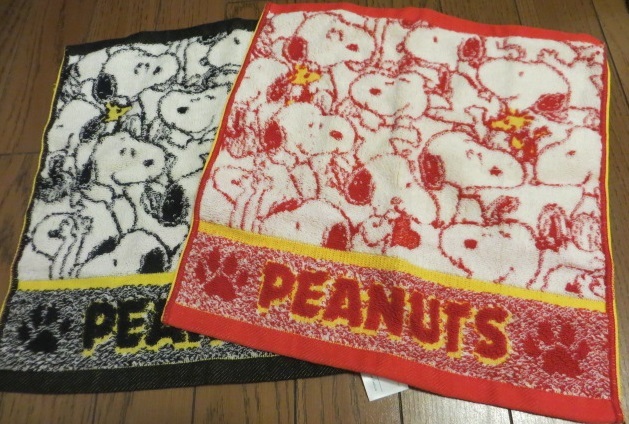 ハンドタオル スヌーピー 赤&黒2枚セット 34×34cm