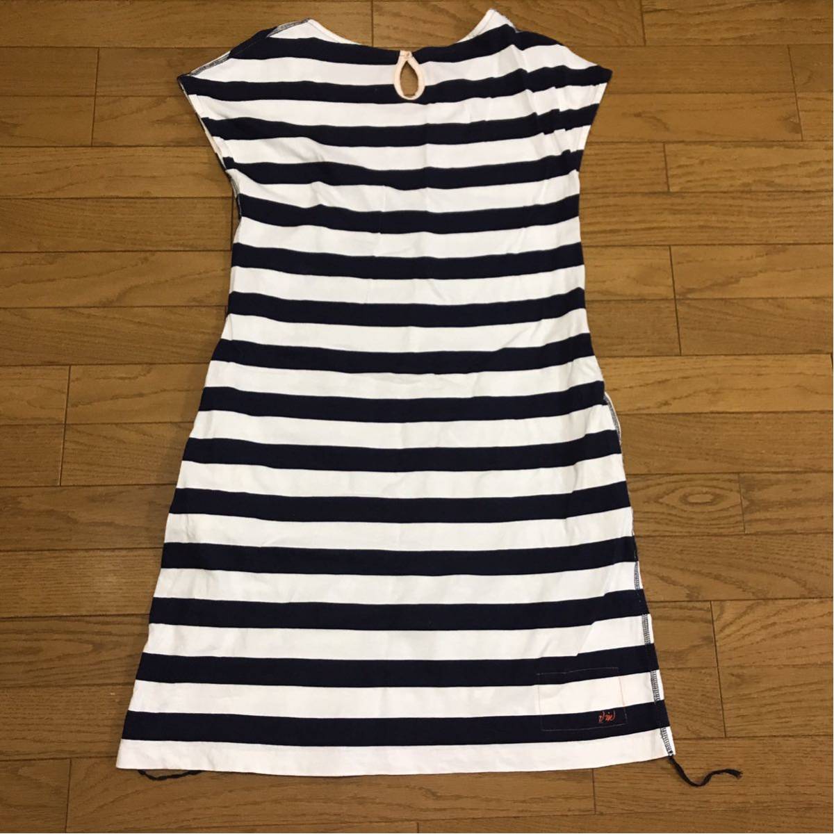 vm ヴーム ネイビー×ホワイト ボーダー フレンチスリーブ ワンピース サイズO サンダルチャーム
