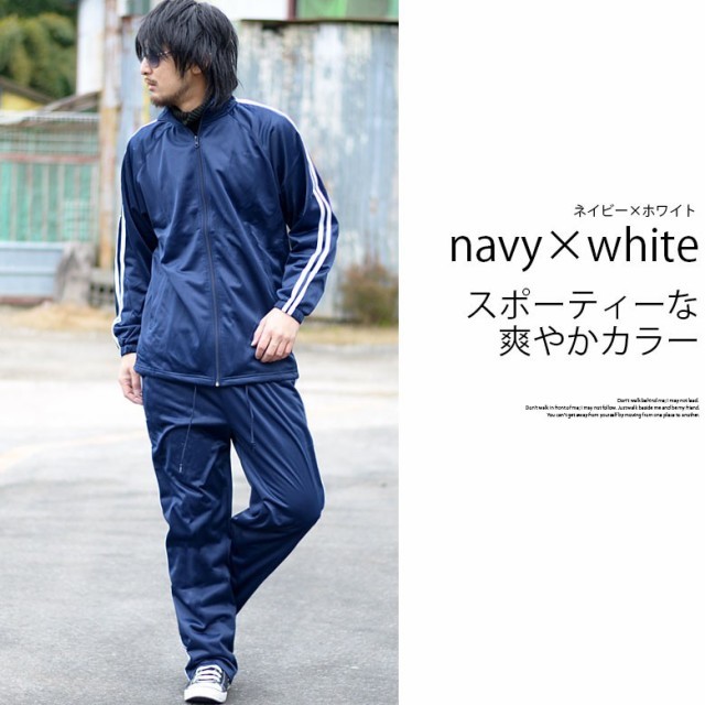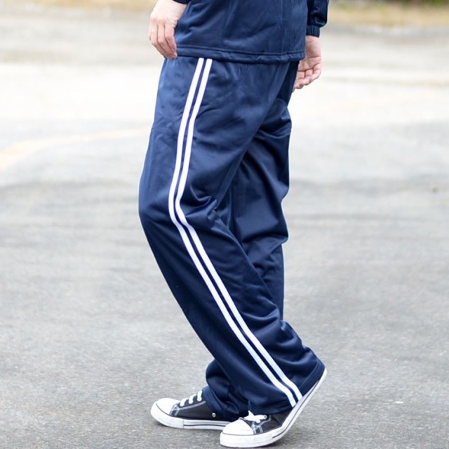 サイドの二本ラインがスポーティーな雰囲気を醸し出し、着回し度120%の万能ジャージ上下セットです。