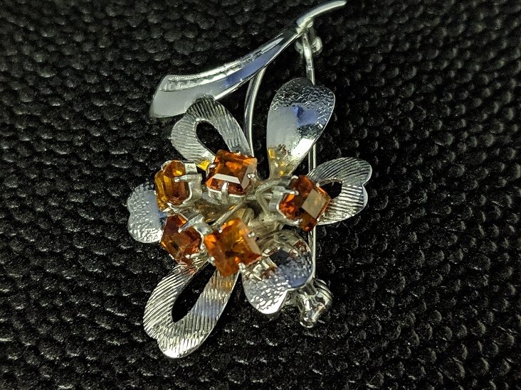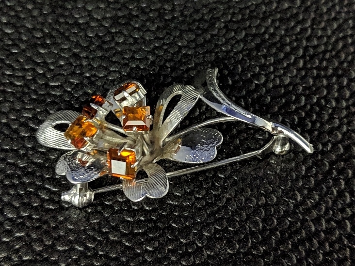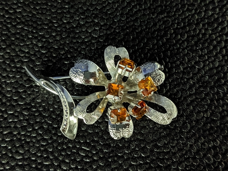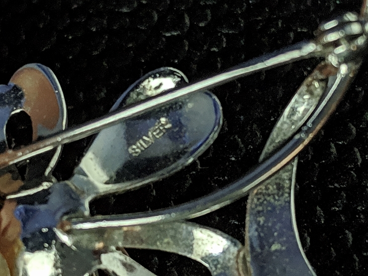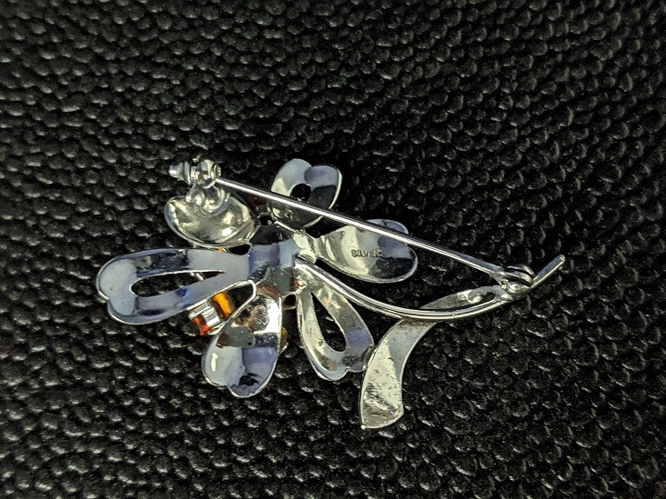 こちらはA209 アンティークブローチ 琥珀 アンバー お花 植物 銀製 シルバー 刻印有り→最初の数字はただの管理番号です。