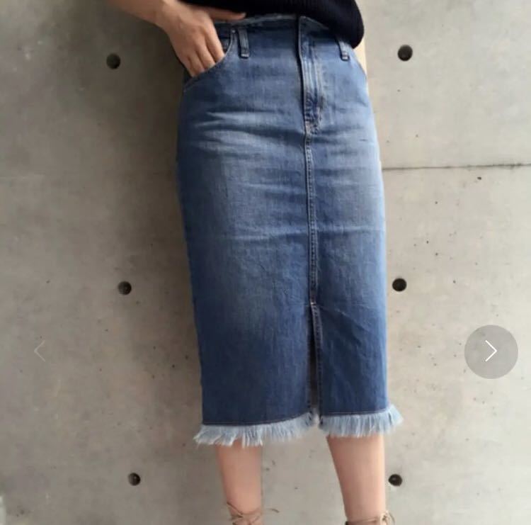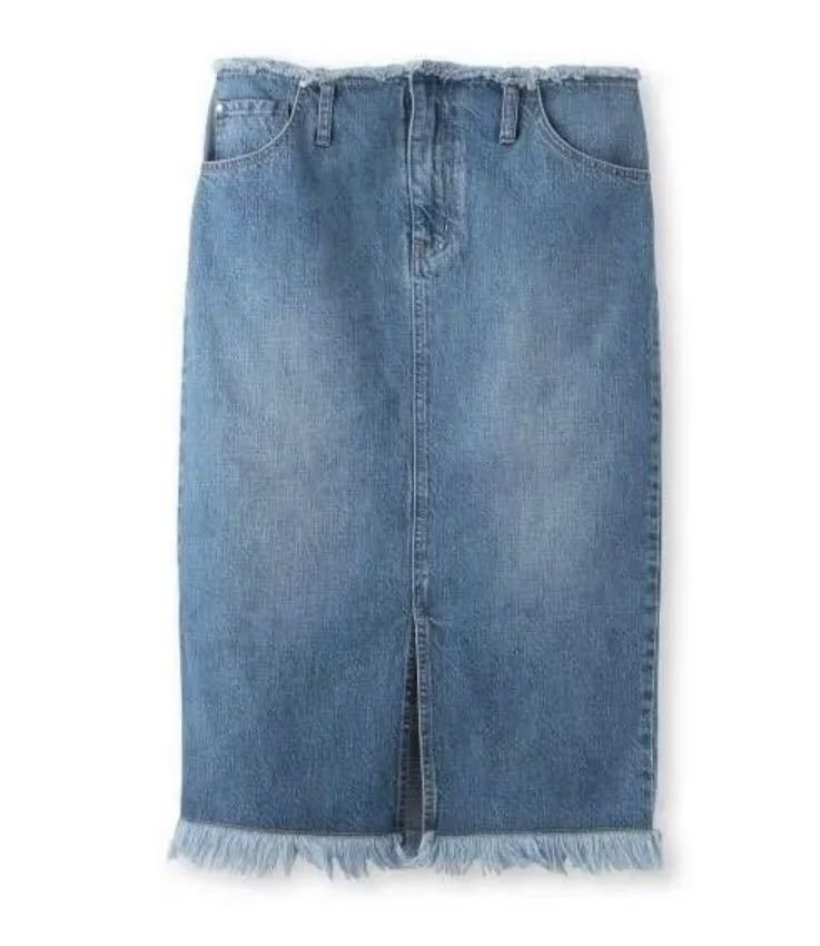 切りっぱなし風のラフな質感で大人カジュアルに仕上げたデニムスカート。膝下丈のタイトシルエットがレディな印象を高める一着です。前後のスリットがより大人っぽいアクセントに。