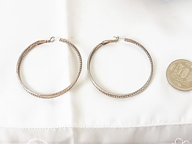 直径約5センチ 大ぶりのフープデザイン 2連に連なったように見えるデザイン 輪っか リングピアス★