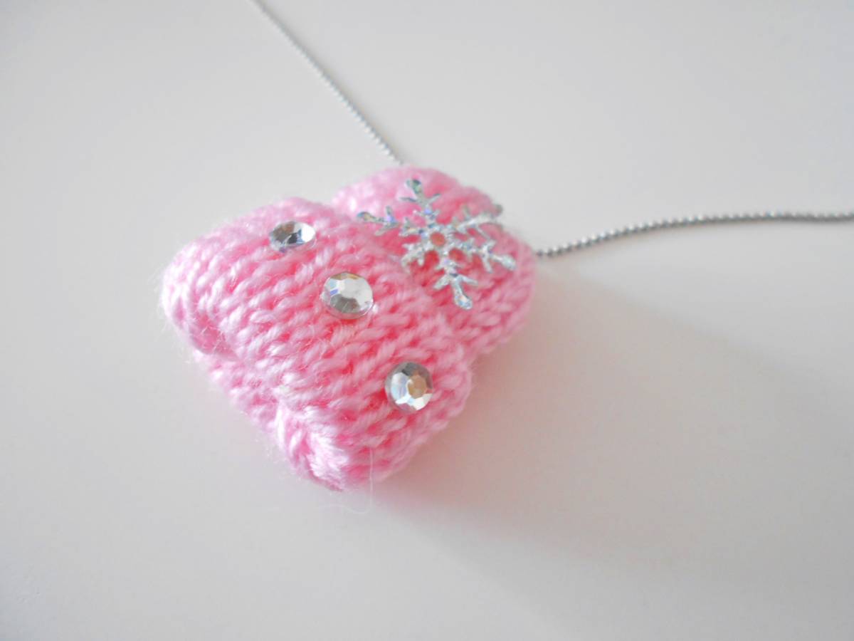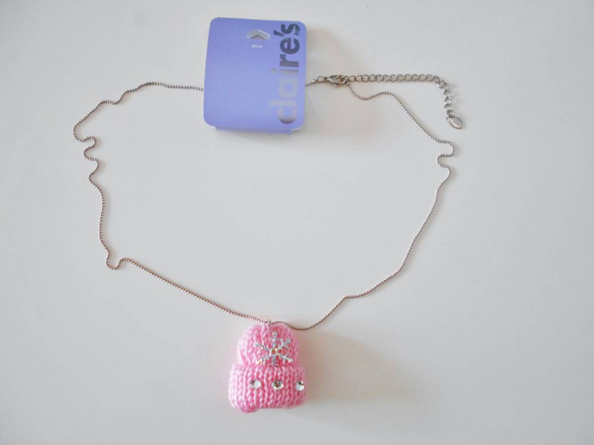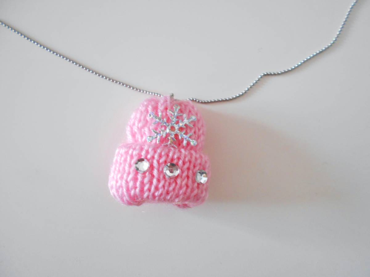 ★新品★結晶が付いた毛糸の帽子 ネックレス、ペンダント  ピンク色