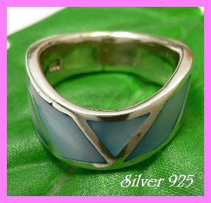 シルバー925銀のシェル貝殻入り リングtypeR[ブルー]12号ラスト1個/シルバージュエリーALL50%OFF