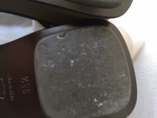 左足ヒール内側に黒く擦った汚れがあります。(拡大写真をご覧ください)
