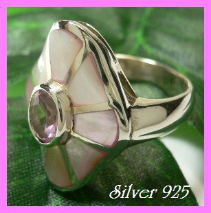 シルバー925銀のシェル貝殻入り リングtypeC[ピンクジルコニア]11号.14号.16号より/シルバージュエリーALL50%OFF