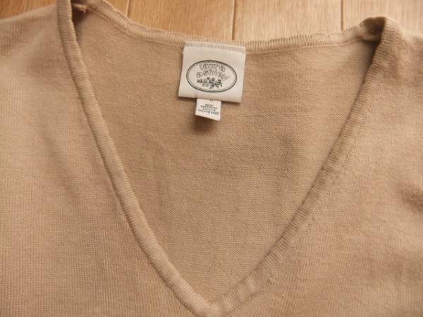 LAURA ASHLEY ローラアシュレイの、ベージュの七分袖Vネックコットンニットです。