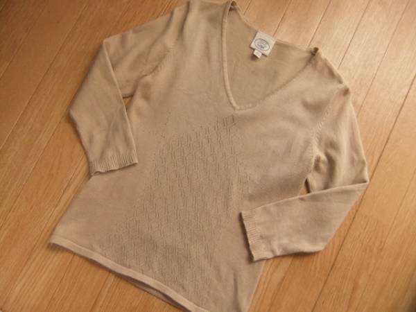 ローラアシュレイ★M★ベージュ七分袖コットンニット