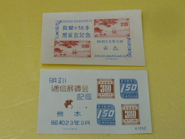 19 本保 日本切手 №K 日本切手 1948年 青森切手展・熊本逓信展 小型シート 計2種 未使用NH