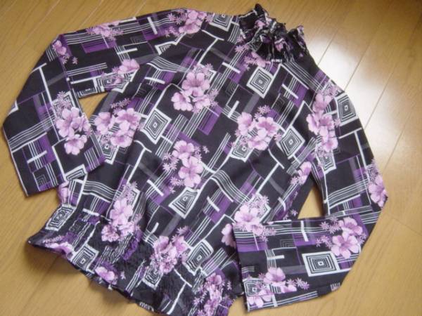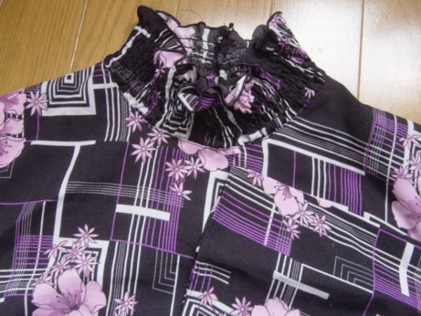 バーゼエヌオヴォ★40★デザイン花柄黒のシャーリングブラウス