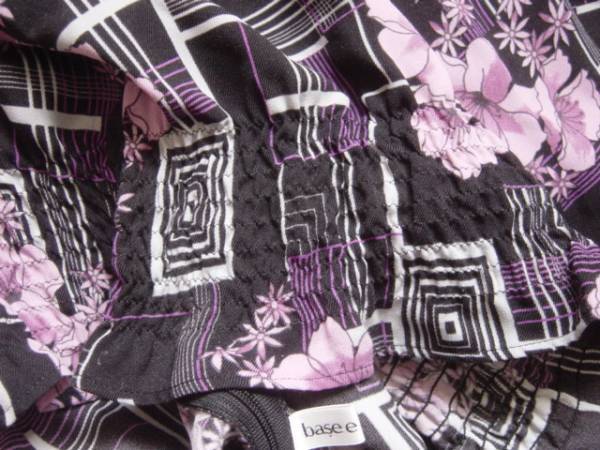 base e nuovoバーゼエヌオヴォの、黒地にデザイン花柄をあしらったシャーリングブラウスです。