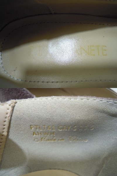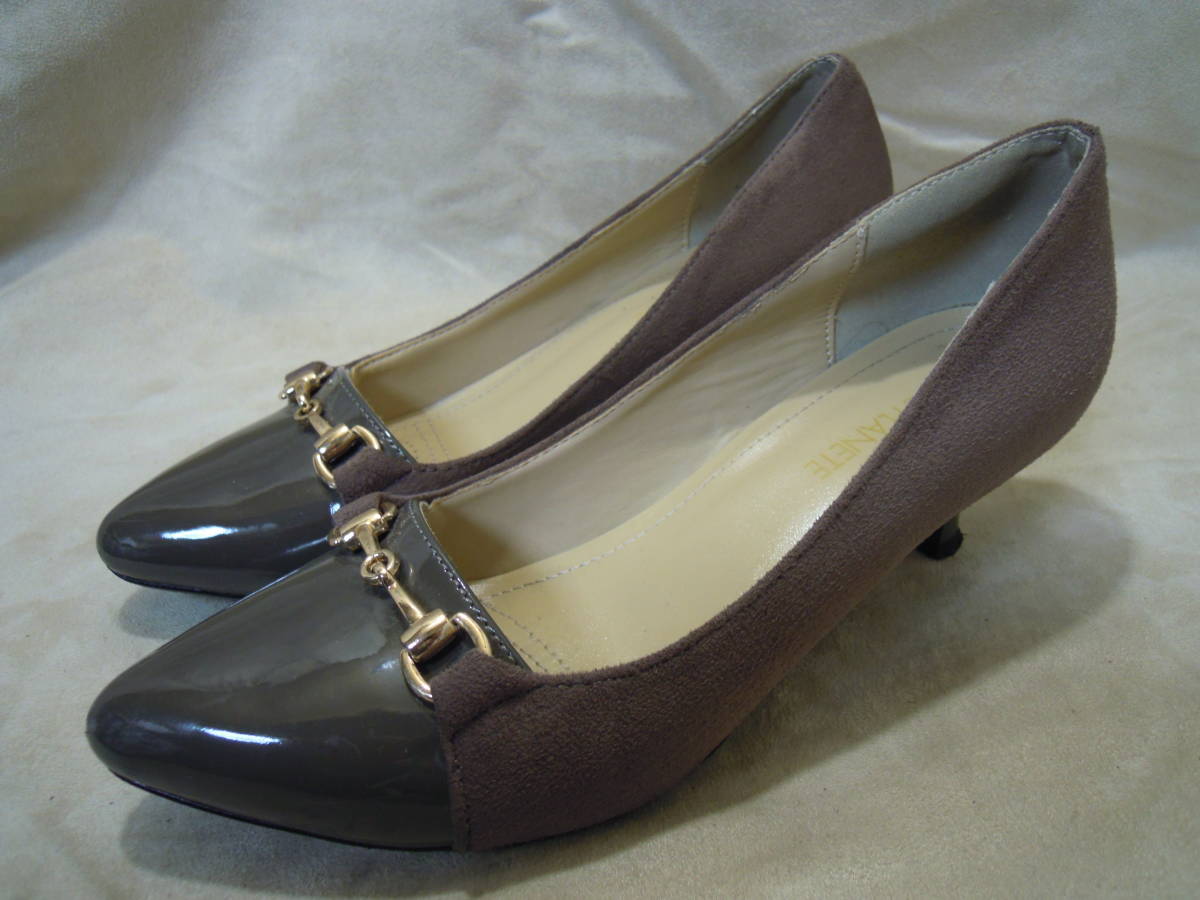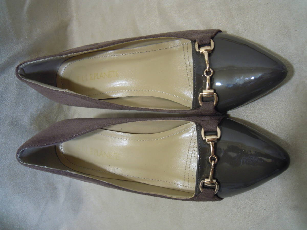 | 【ブランド・形態】 ELLE PLANETE エルプラネット エレガンスパンプス ビット飾り切り替えコンビ サイズ23.5cmです。 【カラー】 つま先はグレーエナメル、スエードはライトブラウンです。 掲載の実物写真はPC環境や光の加減により実物と色合いが若干異なる場合があります。 【特徴】 ELLE PLANETEエルプラネットのレディースエレガンスパンプス 、ビット飾り付い切り替え異素材コンビパンプス。 ビット飾りがポイントになった、高級感が浮き出たシンプルパンプス。 クッション性のあるインソールは中敷制菌防臭加工がされています。 ヒール高:約5.0cm、最大幅:約8.2cm 【状態】 少々使用感はございますが、使用に問題無いと思われます。 右アッパーのかかと付近に1.5cmぐらいの引っかき傷があります。(5・10枚目写真参照) ヒールはそれなりにすり減りがあります。 保存箱はありません。 【素材】 甲材:合成皮革 底材:合成底 【サイズ 】 23.5cm、 質量:375g | |||