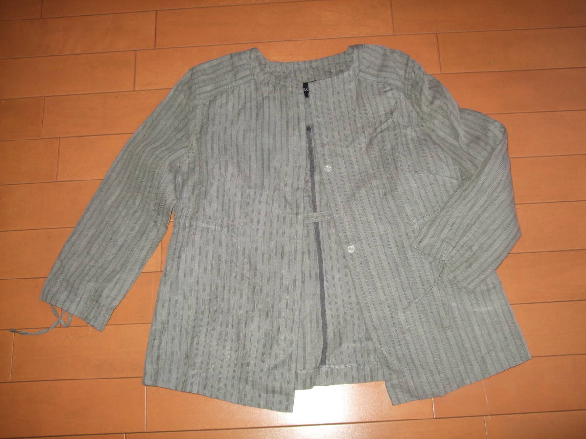 良品即決☆マカフィー リネン混ノーカラージャケット☆グレー系