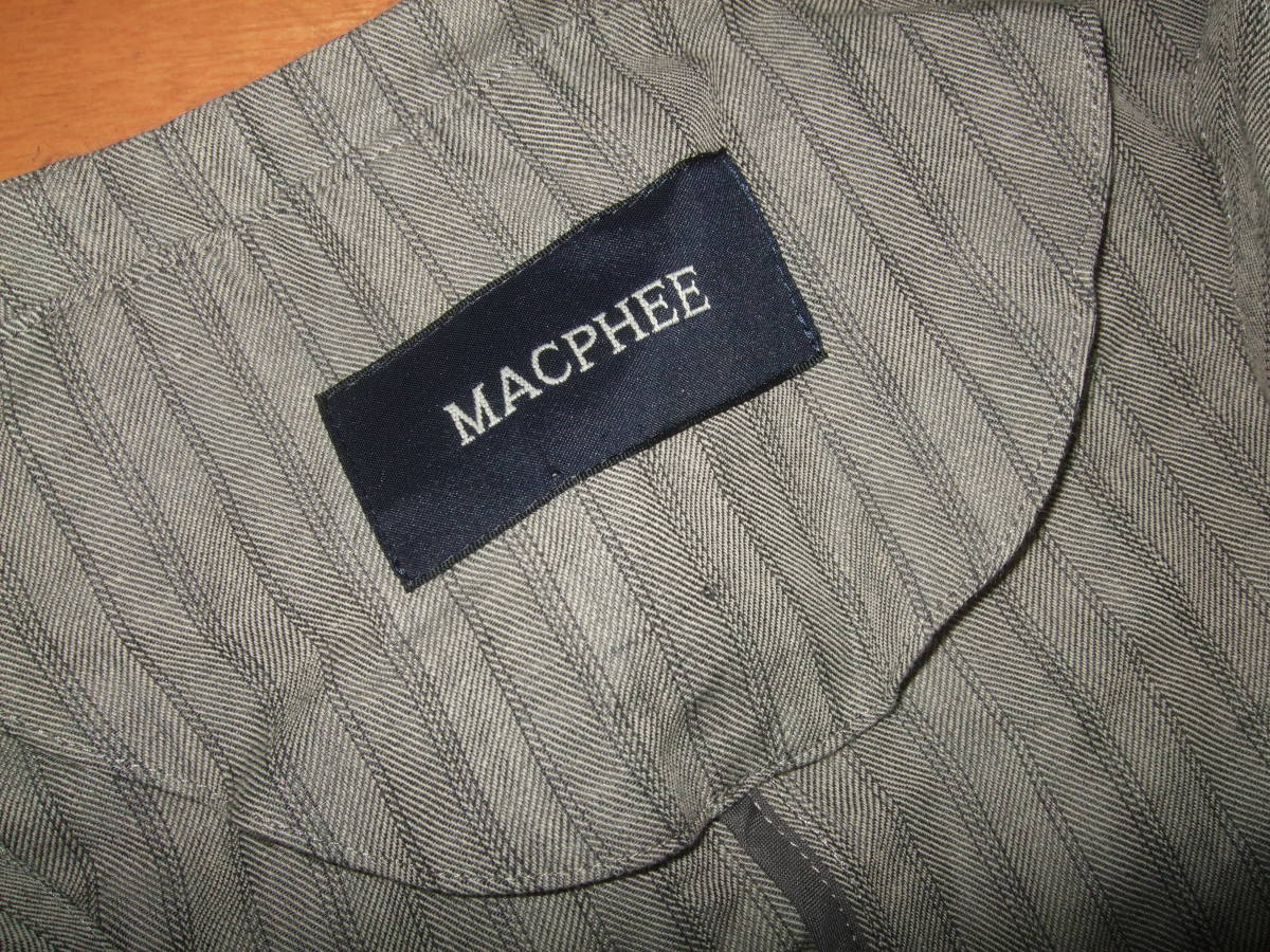 ユーズドですが、きれいなお品で、回数も少ないです。マカフィーのノーカラージャケット、割と薄いものなので、ジャケットというものよりは軽く羽織れる、それでいてきちんと感もあり、おすすめのアイテムです。グレー系で、ツイード、ヘリンボーン織のような感じのものですが、素材自体は綿、麻各50、春夏ものの涼し気な軽やかなアイテムです。ノーカラーが女性らしくておすすめです。身幅約48、丈約51、袖丈約39です。即決、ぜひご検討ください。。