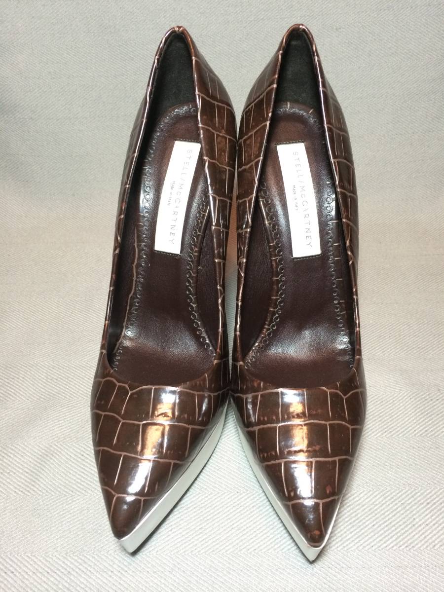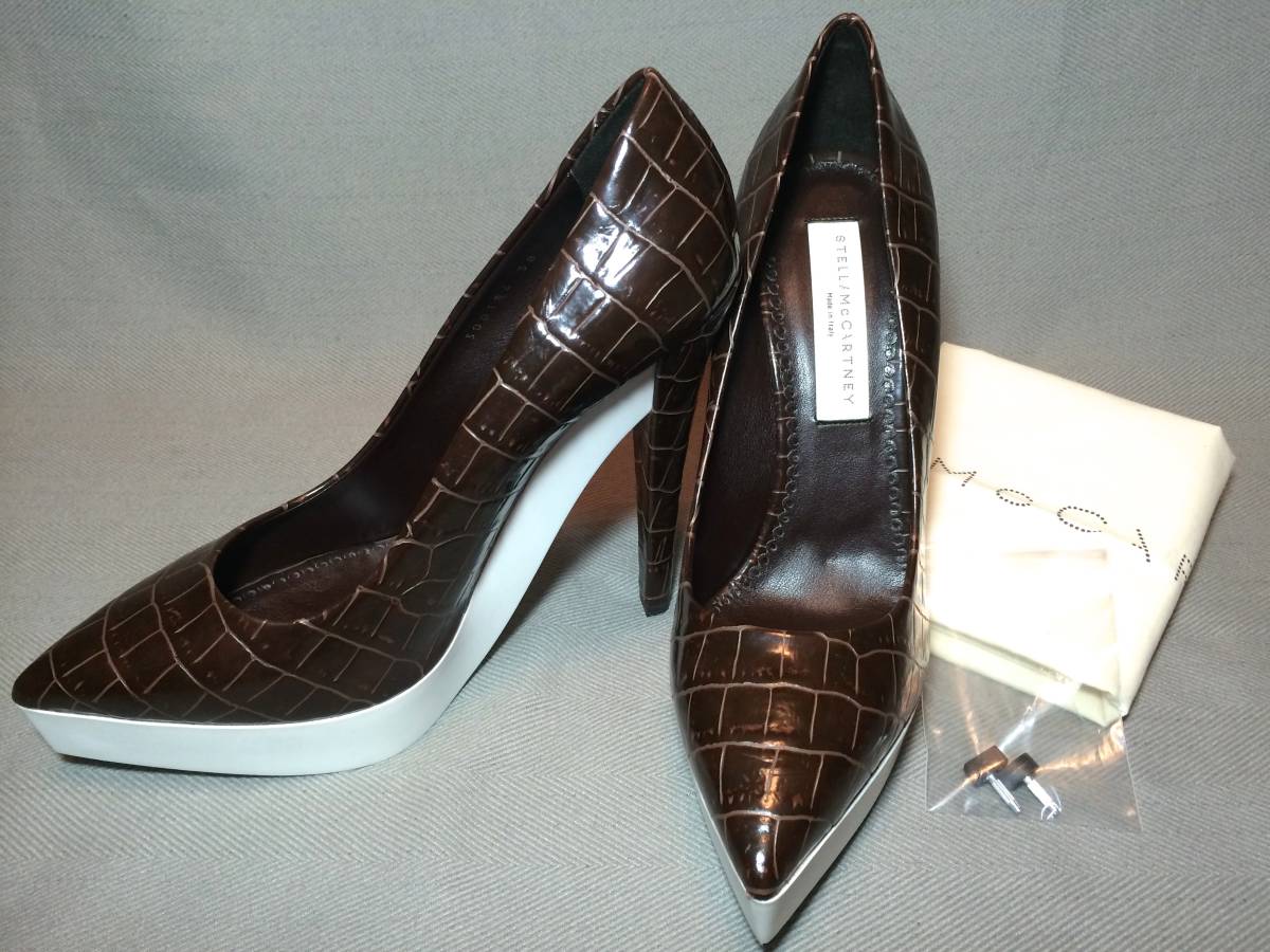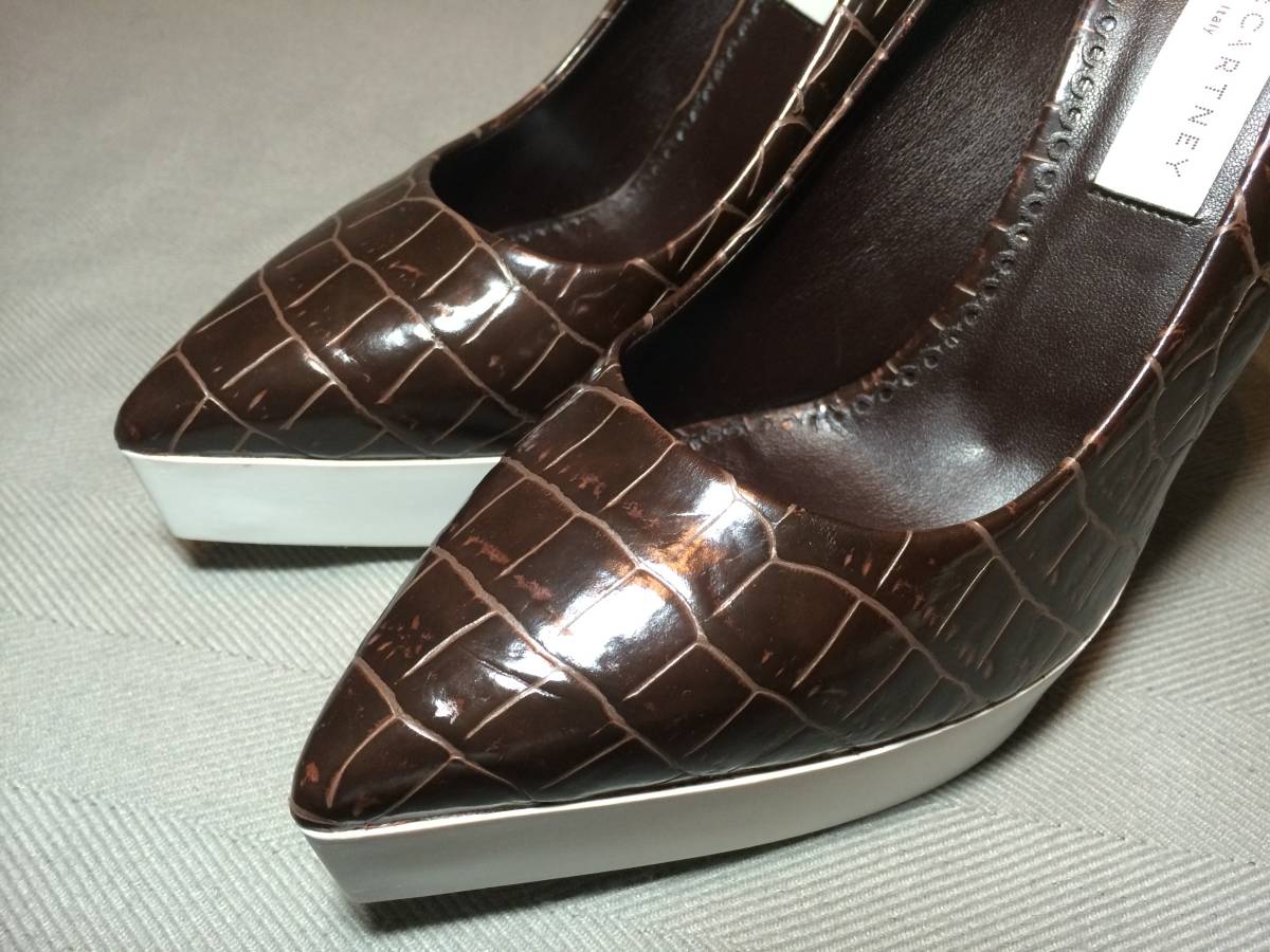 新品、ステラマッカートニーのクロコ型押しバイカラーパンプスです。