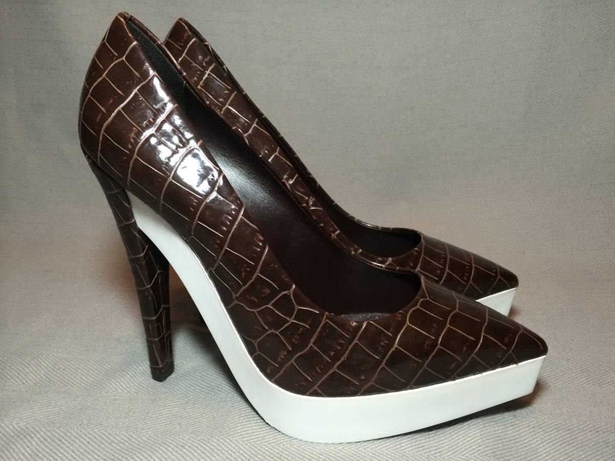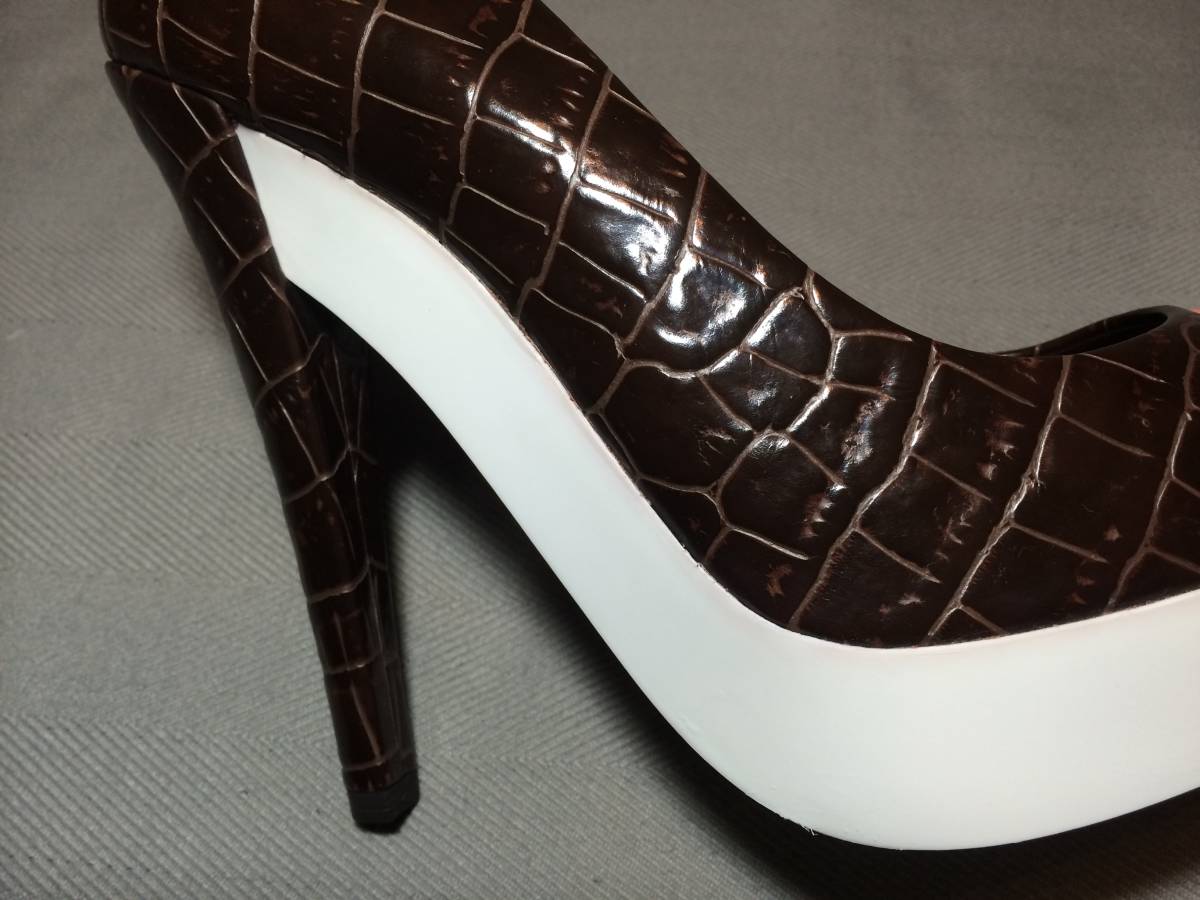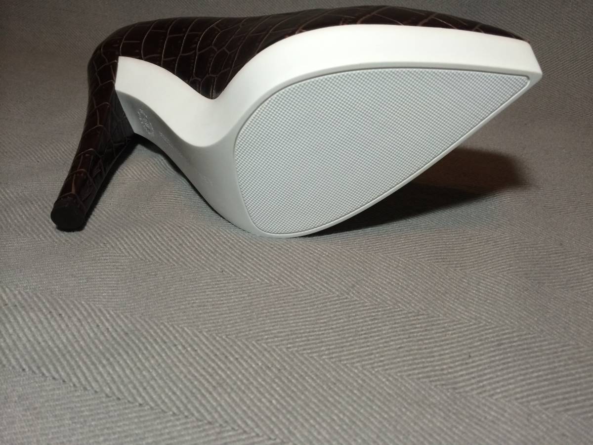新品、ステラマッカートニーのクロコ型押しバイカラーパンプスです。
