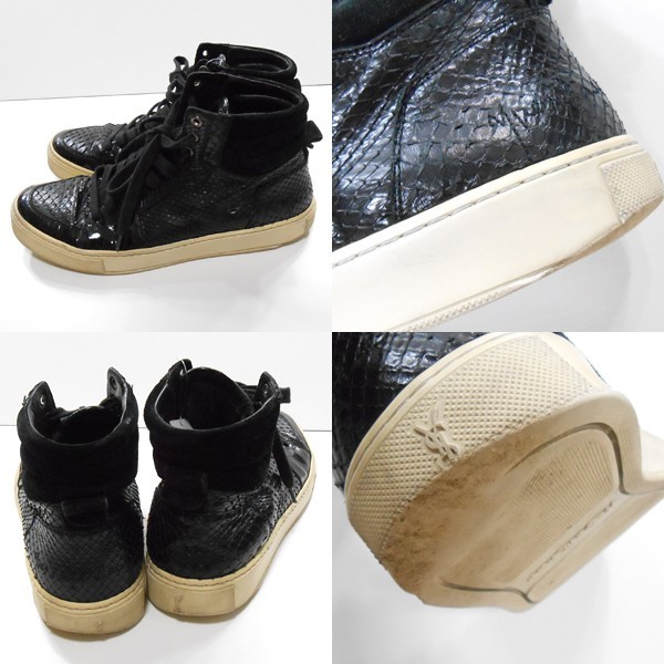 YGG★YSL イヴサンローラン ハイカットスニーカー パイソン 黒 シューズ ブラック 41ハーフ 26cm 靴