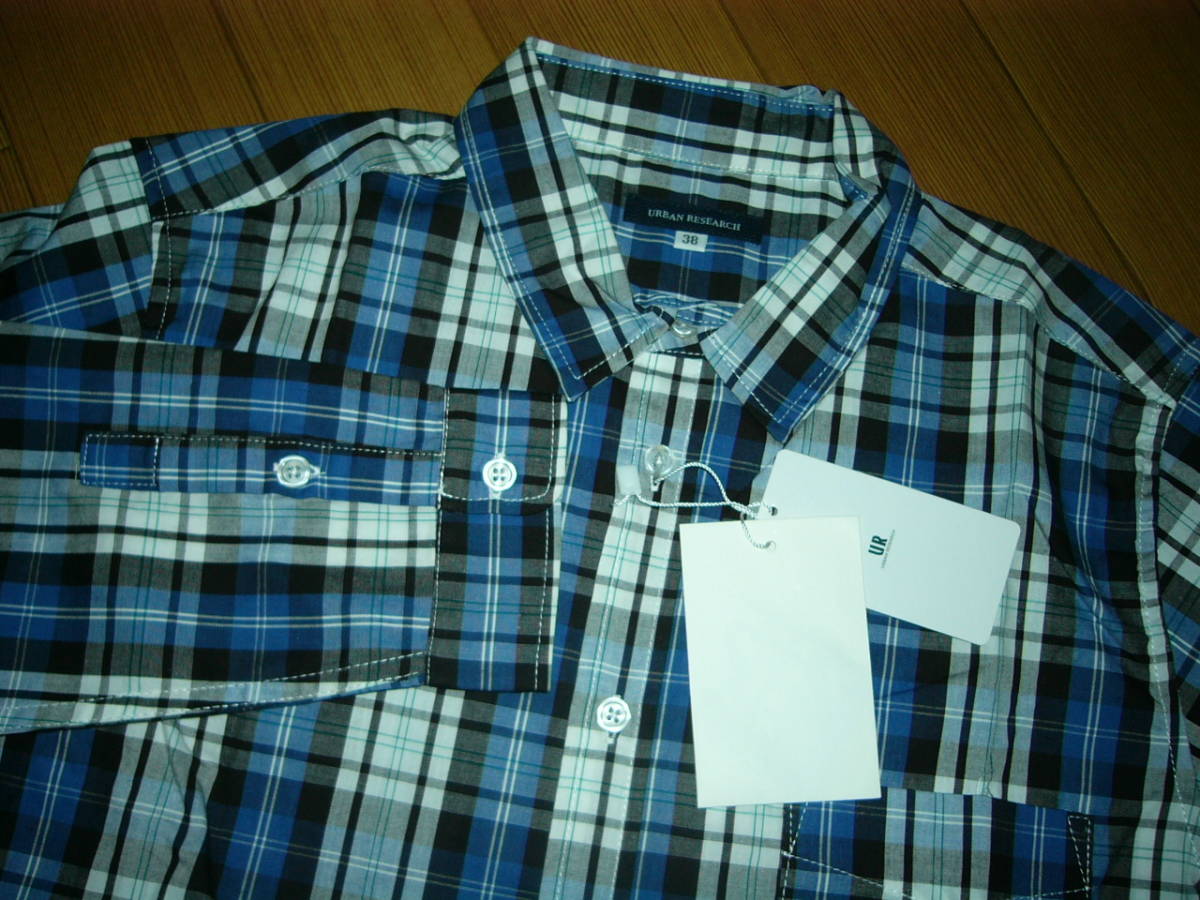 新品 アーバンリサーチ URBAN RESEARCH 薄手 チェックシャツ 38 青 長袖シャツ