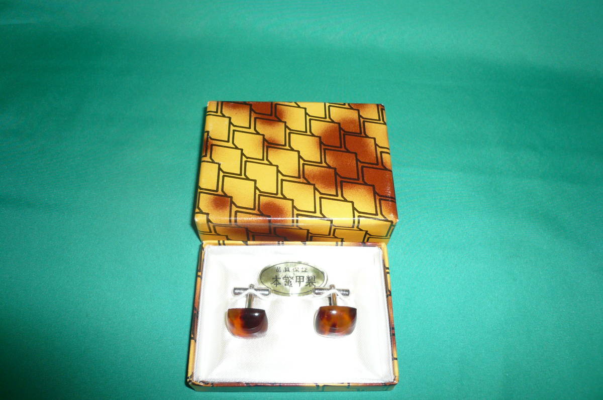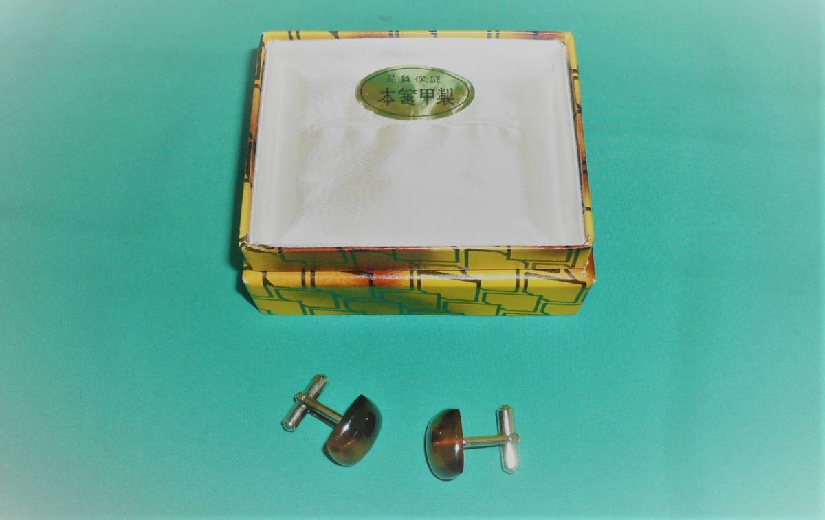 紳士身装品6)米寿の記念出品 特別価格 本物鼈甲カフス ワシントン条約で捕獲禁止の甲羅使用 本鼈甲は超貴重品です