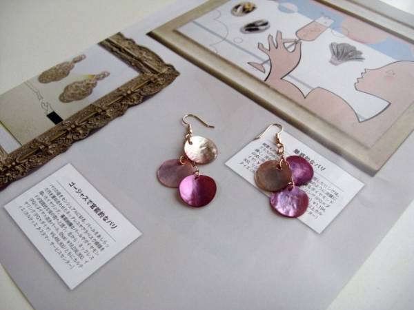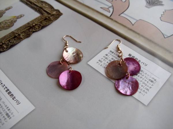 春の予感・・シリーズです♪薔薇色の帽子・・薔薇色のシェルのピアスです♪モーヴピンクやベージュピンク、淡いピンクのシェルにピンクゴールドのチェーンを合わせて可憐な表情です♪シェルは18ミリ位です♪長さは全長6・3センチです♪イヤリングにも変更出来ます♪お揃いのネックレスやブレスレットも出品しています♪シンプルで飽きのこないいつまでも着けられるデザインを考えて作りました!ハンドメイドをご理解頂いてノークレーム、ノーリターンでお願いします