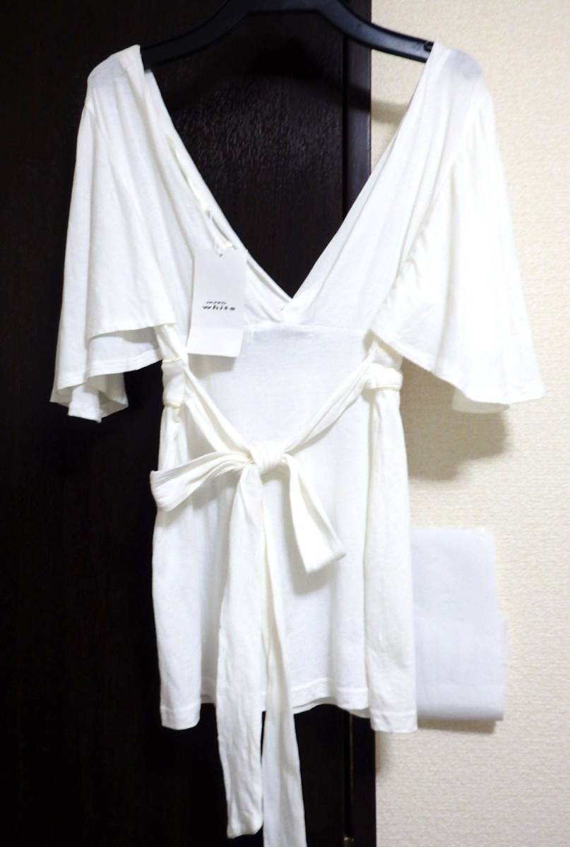 タグ付*新品*定価3990*ジャイロホワイト*バックリボン カットソー チュニック ホワイト 白 トップス 半袖