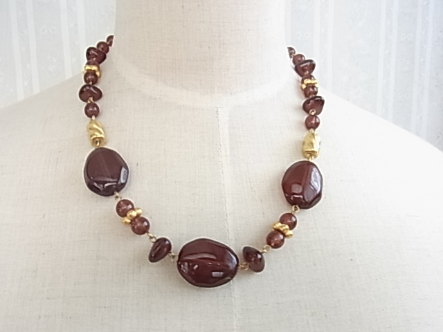 ☆NOEMA ヨーロピアン調 ブラウン系のカラーとゴールドカラーの相性が綺麗 ストーン調のお洒落なネックレス