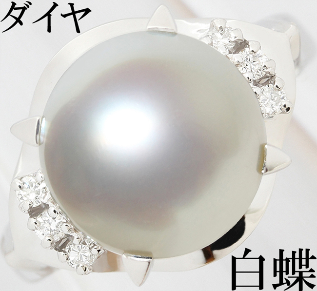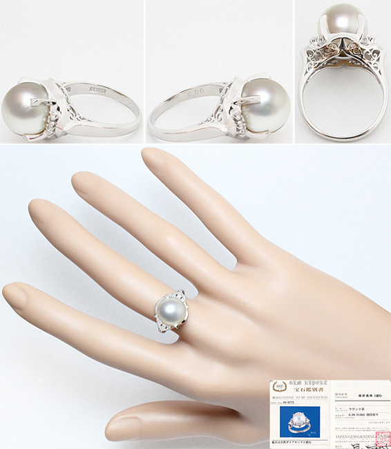 | 上品 綺麗☆南洋 白蝶真珠 パール 10ミリ ダイヤ 0.09ct リング 指輪 Pt900 プラチナ 9号♪鑑別付・送料込 | ||