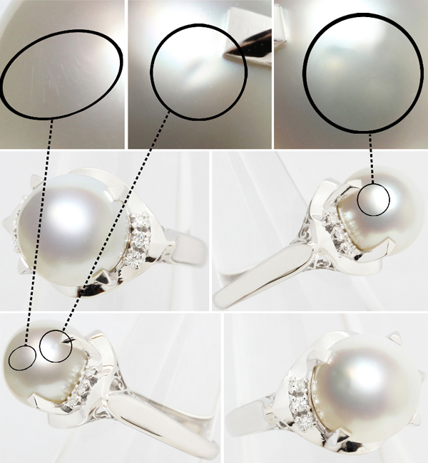 ☆高級感をたたえた上質なテリが魅力の白蝶真珠をセットしたリングです♪ ☆主に沖縄やタヒチなどで養殖されている白蝶真珠は、上質なテリと深みのある神秘的なカラーで人気の高いお品となります♪ ☆こちらの白蝶真珠はほんのりとピンク味を帯びたホワイト・カラーとなり、華麗で美しい一品♪ テリも良く、柔らかな輝きがお手元を品良く彩ります♪ ☆本物の真珠ですので、写真にも掲載のように若干の「肌荒れ」がございます。お召しの際にはそれほど気にならないと存じますが、写真をご確認の上、ご検討ください。 ☆直径が約10.3ミリとなり、白蝶真珠としては標準サイズ♪ 様々なシーンでお召し頂け重宝します♪ ☆脇には合計6石・0.09カラットのダイヤをセット♪ ダイヤならではのキメ細やかな輝きが、エレガントな魅力を加味します♪ ☆リング枠は高級素材のPt900(プラチナ)製となり、末永くご使用いただける確かな品質でございます♪ ☆リング内側には、ダイヤのカラットと素材を表す「Pt900 0.09」の刻印がございます♪ ☆「鑑別書・ケース・送料」込みのお値段となります♪ 消費税は発生いたしません♪ ☆写真でリングが黒く写っている部分は、カメラの写り込みです♪ 実物に汚れ・キズ等があるわけではございませんのでご安心ください♪ | |