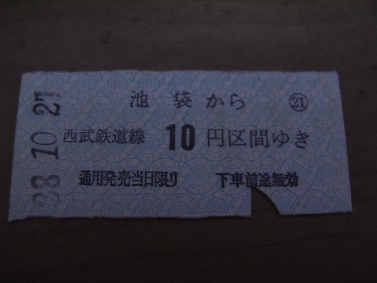 西武鉄道 池袋から西武鉄道線10円区間 昭和38年10月27日 池袋駅発行 /半硬券
