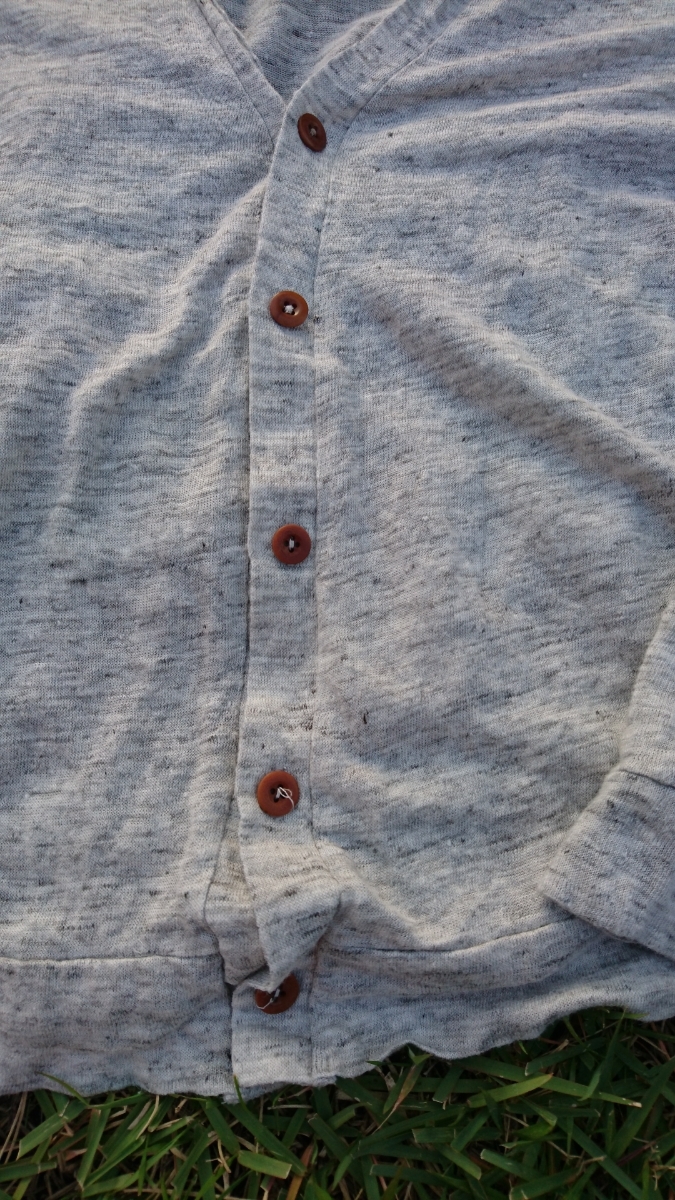 ボタン全てついてますが、バッテン状に縫われている片方かほつれてある箇所が下から2ヶ所あります。すぐにとれるものではないですが、気になる方は補強してください。