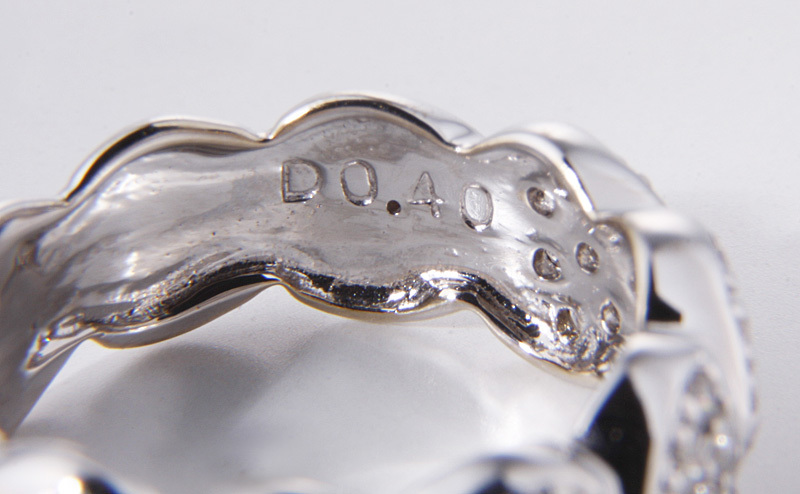 半周にセッティングされたダイアモンドは濁りは無く透明感があります。
