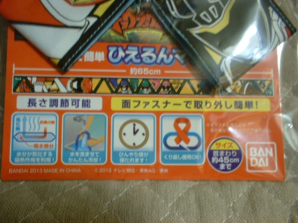 2個セット。バンダイ。サイズ:約65cm。水を含ませて首に巻くだけで、らくらく冷却。繰り返し使用できます。面ファスナーで、簡単に脱着できます。