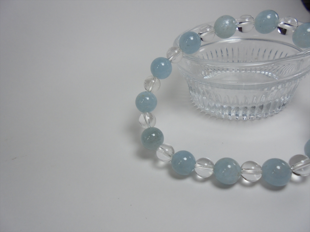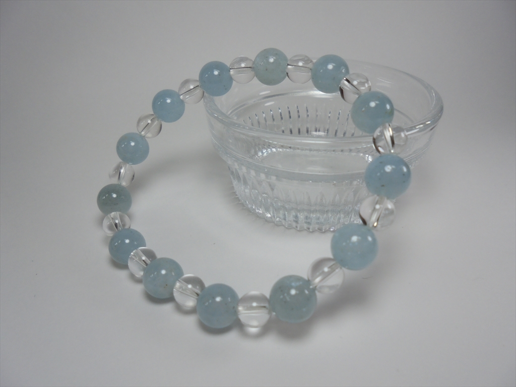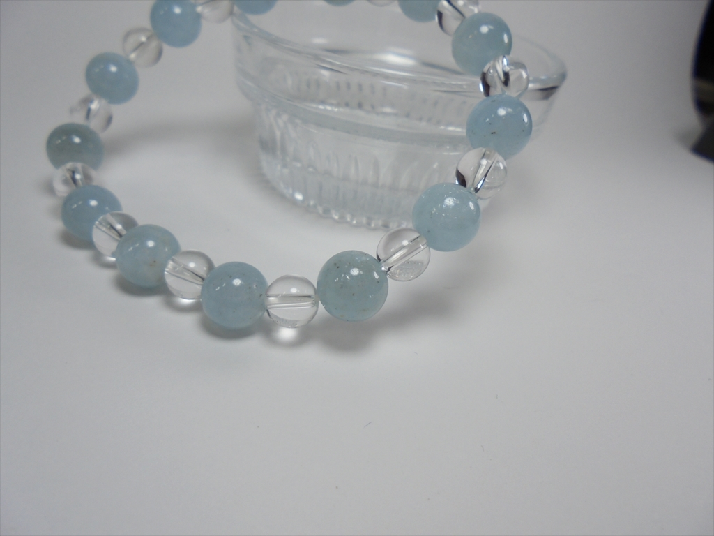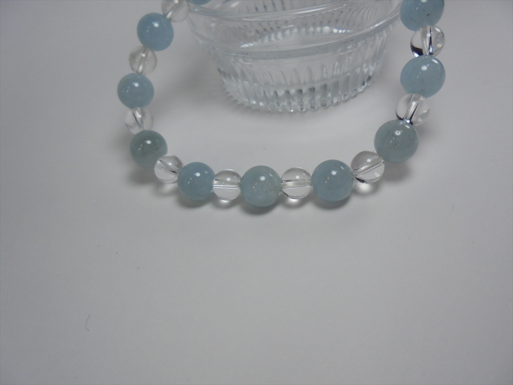 喜心-アクアマリン2A8mm-水晶5A6mm-内径16.5cm-天然石ブレスレット | |||