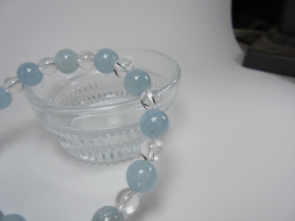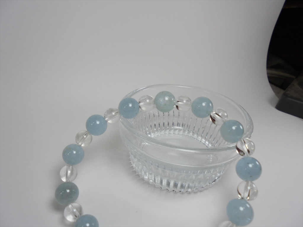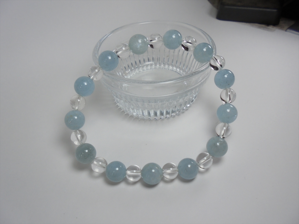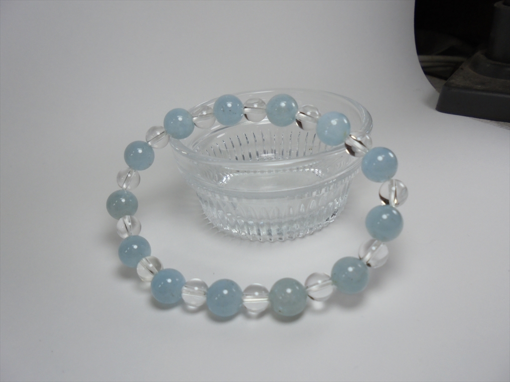 喜心-アクアマリン2A8mm-水晶5A6mm-内径16.5cm-天然石ブレスレット | |||