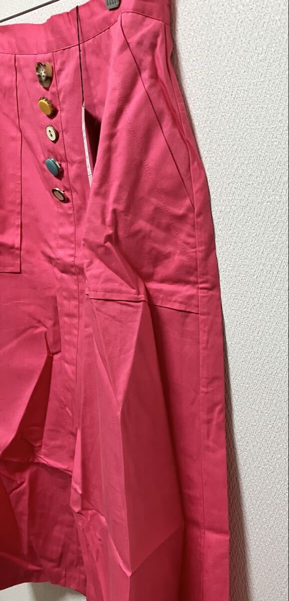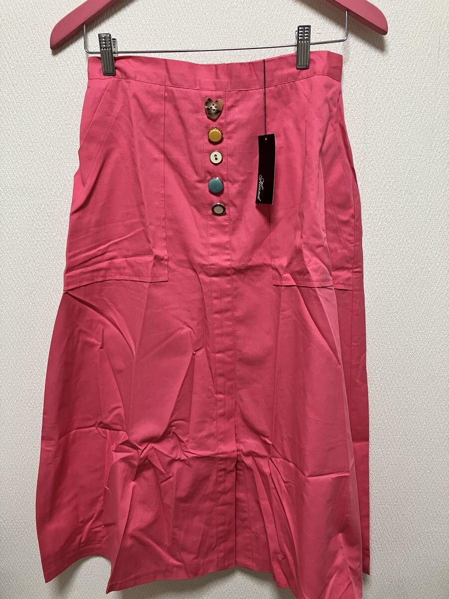 HIANDハイアンド マルチボタンピンクスカート/フレアデザインミドル丈ロング丈/裏地あり☆堀江直美