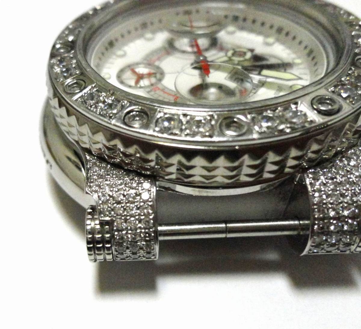 落札後にお客様の時計をお預かりして、ベゼルとラグを天然ダイヤモンドにて加工すると、高級感漂う魅了的なラグジュアリーラインへと変貌いたします。