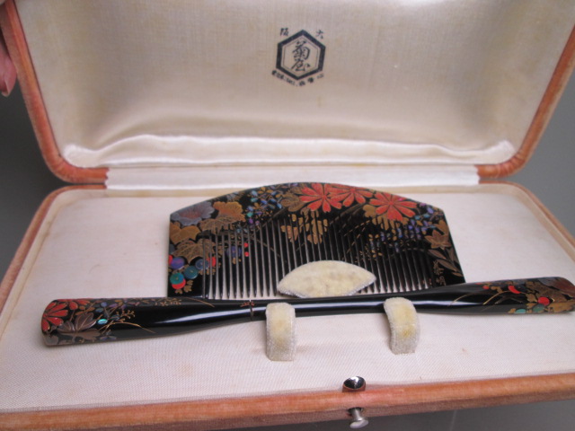 【江月】アンティーク・菊屋 泰明作 本鼈甲 秋草蒔絵の櫛&笄 共ケース