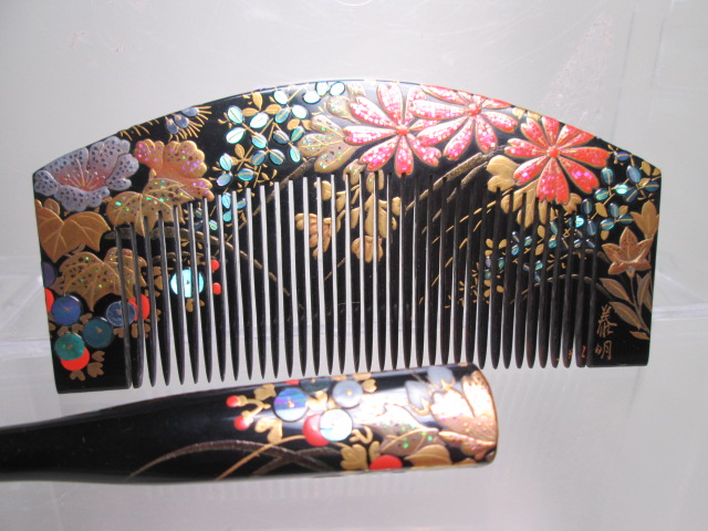 サイズ 櫛 10,3cmx4,7cm 笄 16,5cm