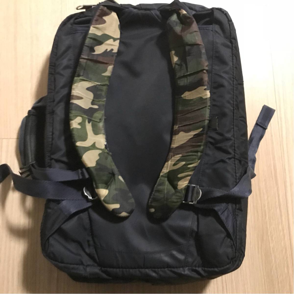 使用頻度は少なかったものの、ショルダーのカモフラ生地の部分に擦れや切れなど、ダメージがあり、経年によるシワや小キズなどもあります。