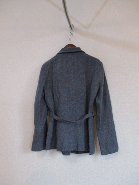 | 商品紹介 | ウエストのベルトがポイントになったジャケットです。 ツイード素材で色は紺や青のブルー系の糸と生成りのような糸が 混ざっています。 基本的にはテーラードのシングルボタンのシンプルな形です。 《素材》 表地:毛95% ナイロン5% 裏地:ポリエステル ※割合の記載なし |