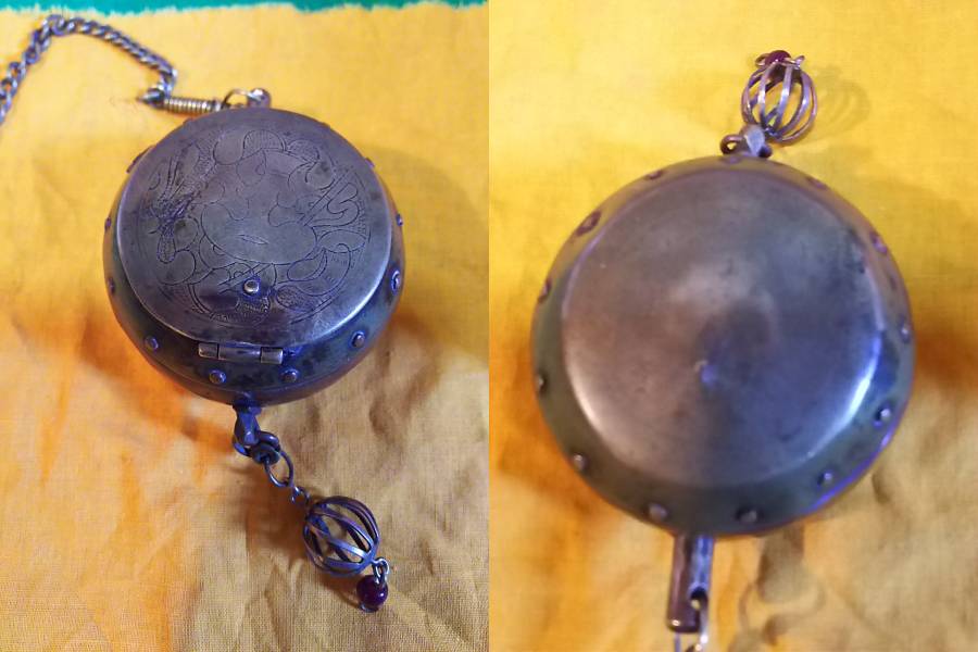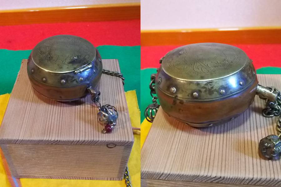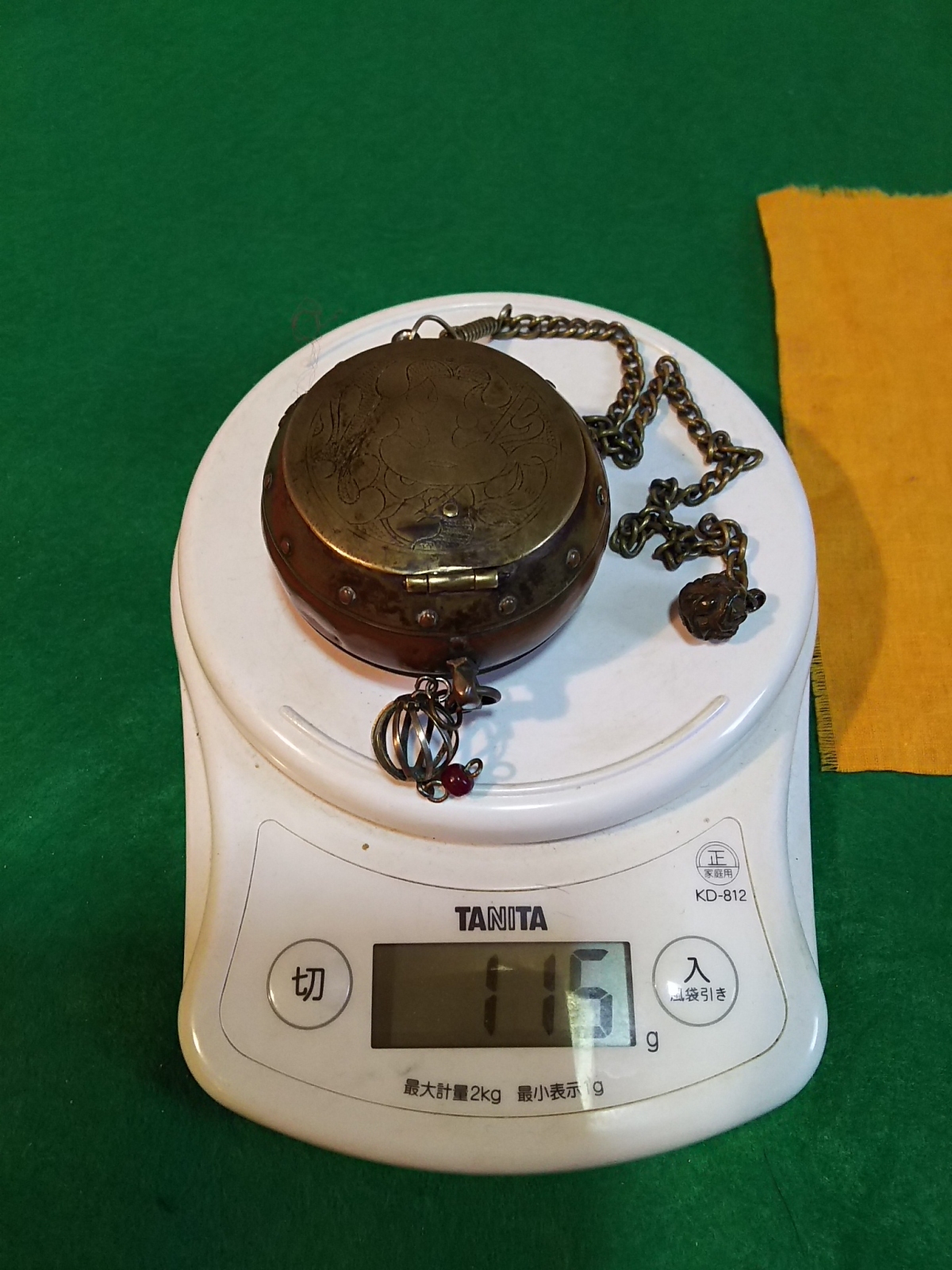うぶだし骨董仏教美術大珍品太鼓型袖香炉(吊下げ香炉)唐物 商品サイズ径6,4センチ 厚み4センチ 重量115g 商品状態説明材質赤銅、黄銅地で太鼓型の袖香炉で滅多に出ない大珍品です。状態も使用頻度小当たり在りますが状態良いです。(在銘入りですが判読不明 詳しくは、写真参照でお願いします。 骨董品につきノンクレームノンリターンでお願いします。 落札後48時間以内で連絡できる方4日以内入金できる方入札待ってます。 発送は、ゆうパック60サイズにて発送いたします。