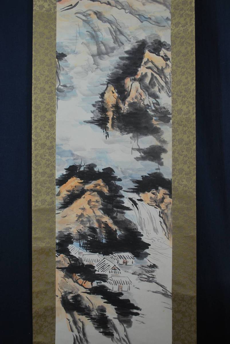 真作/伍岳/山水図//掛軸☆宝船☆M-171 J