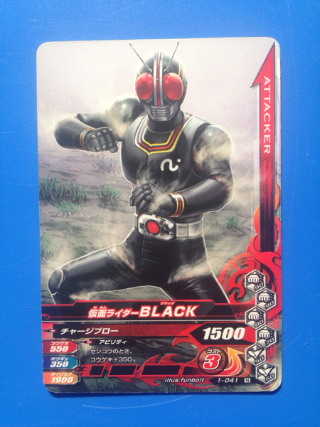 仮面ライダー、ガンバライジング・第1弾からNo.041《仮面ライダーBLACK》の登場です。発送は、普通郵便を利用します。(特にご希望のない場合)おとりまとめも可能ですが、送料に変動する場合がございます。また、送料のご請求は、自宅での計量を基準にご請求させていただいておりますので、実際の金額と差異が出る場合もございます。予めご了承ください。他にも多数出品中です。まとめてこの機会にいかがでしょうか?ご質問お待ちしております。