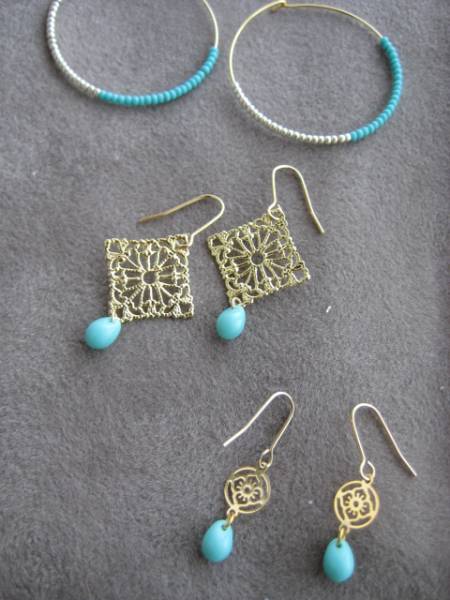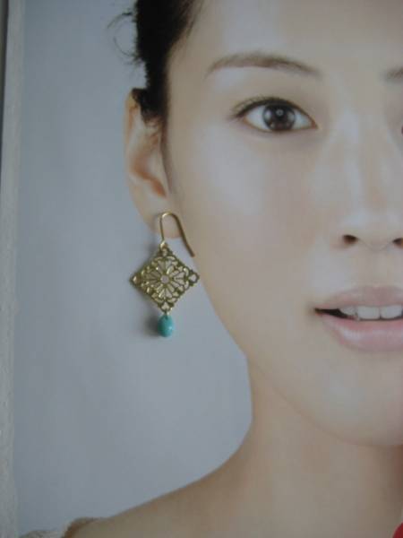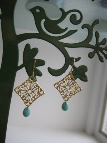 ◆透かしスクエアしずくピアス◆新品 ゴールド ターコイズ トルコ 上品 レース ドロップ 大人可愛い シンプル ティアドロップ ブルー軽量