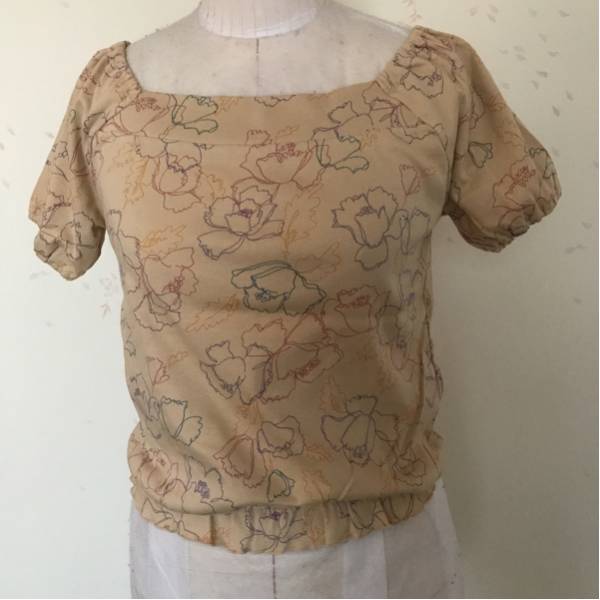 綿100%サイズは身幅40着丈48ウエスト部分にゴムシャーリングをして縮めてあります。